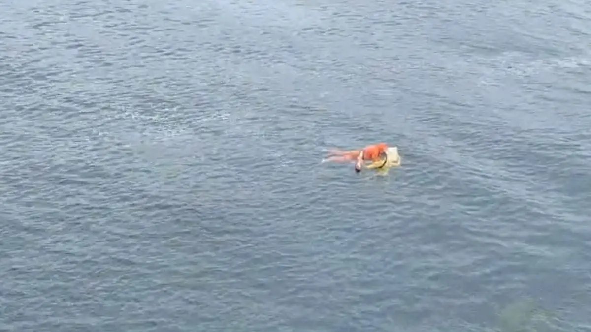 Na manhã desta terça-feira (13), o filho foi encontrado vivo no mar após passar a noite à deriva. Ele sobreviveu ao naufrágio agarrado a uma porta de geladeira, usada como boia improvisada. As imagens do resgate, feitas pelo helicóptero Águia da Polícia Militar, mostram o momento em que o homem é localizado boiando e retirado da água.