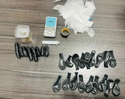 Durante as buscas, restaram apreendidas drogas já embaladas, balões de festa e balança utilizada para a pesagem da droga.