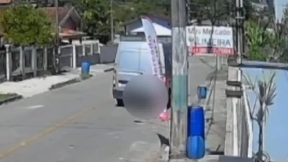 João estava atravessando a via quando, chegando próximo da calçada, foi atropelado por um furgão que manobrava de ré. Pelas imagens, é possível observar que ele já estava praticamente de costas conforme o veículo se aproximava.