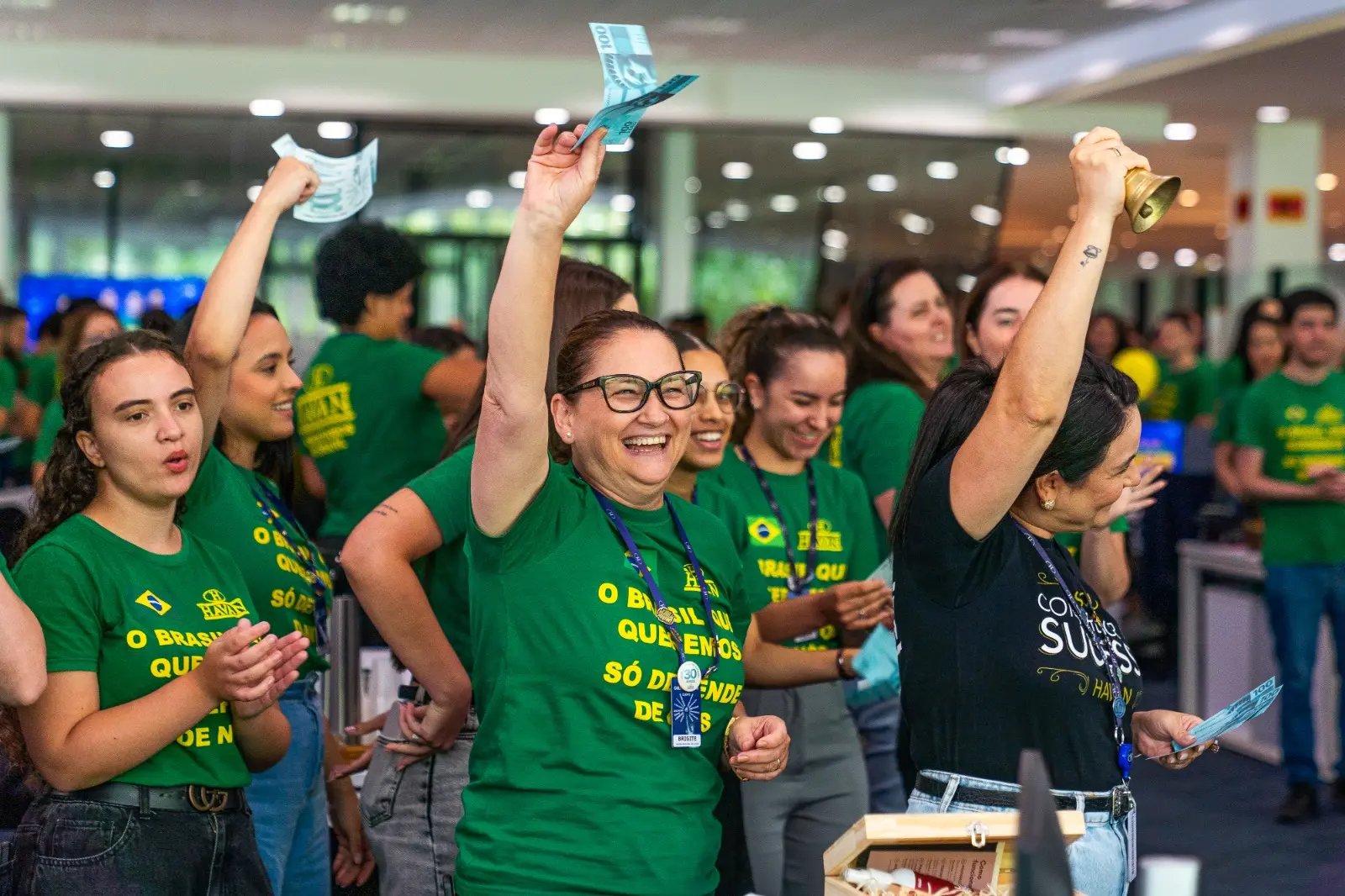 A sexta-feira começou em clima de festa na Havan. Os colaboradores do Centro Administrativo, em Brusque, comemoraram o pagamento de R$ 90 milhões do Programa de Participação nos Resultados (PPR). O salário extra foi pago a todos as 23 mil pessoas que trabalham na rede varejista. A comemoração teve discurso dos diretores da empresa e uma brincadeira entre os colaboradores.