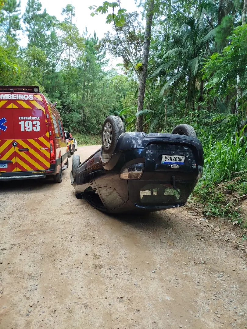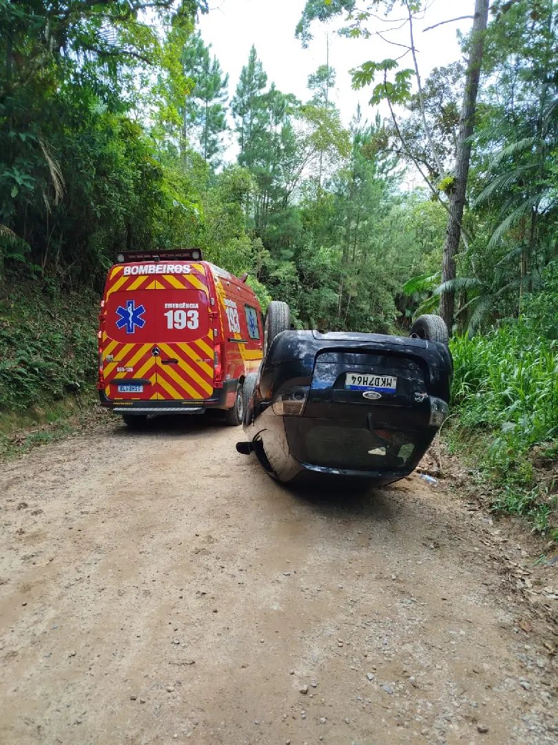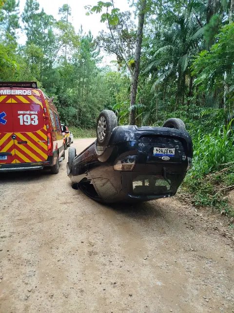 Um capotamento mobilizou equipes do Corpo de Bombeiros Militar na manhã deste domingo (18), na Estrada Geral do Lageado Alto, em Guabiruba. A ocorrência foi registrada por volta das 11h29, nas proximidades da Igreja Santo Antônio, próximo à Cachoeira do Gerônimo.