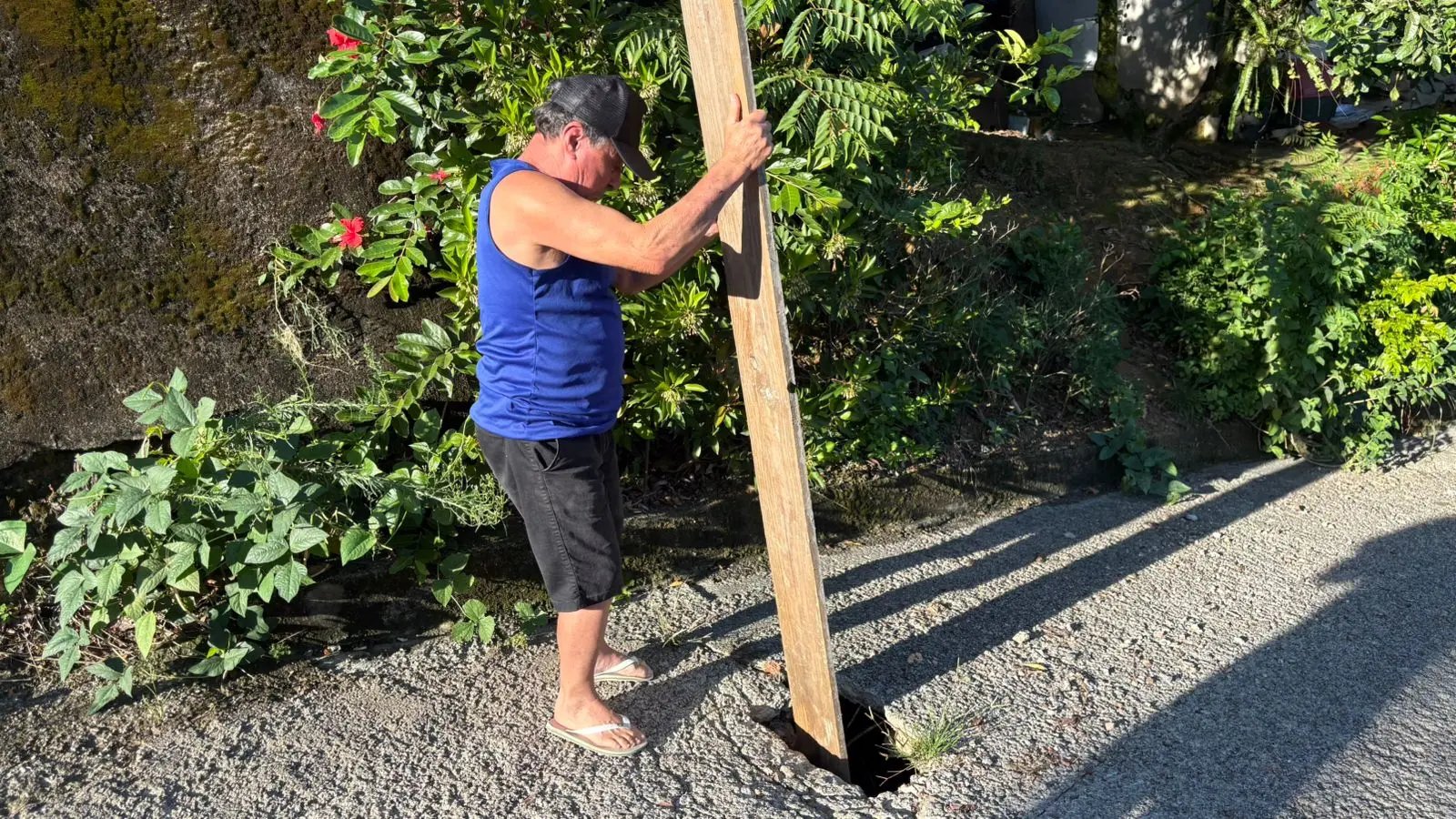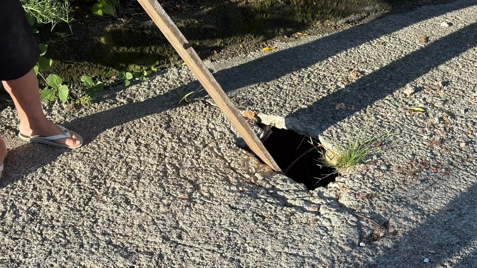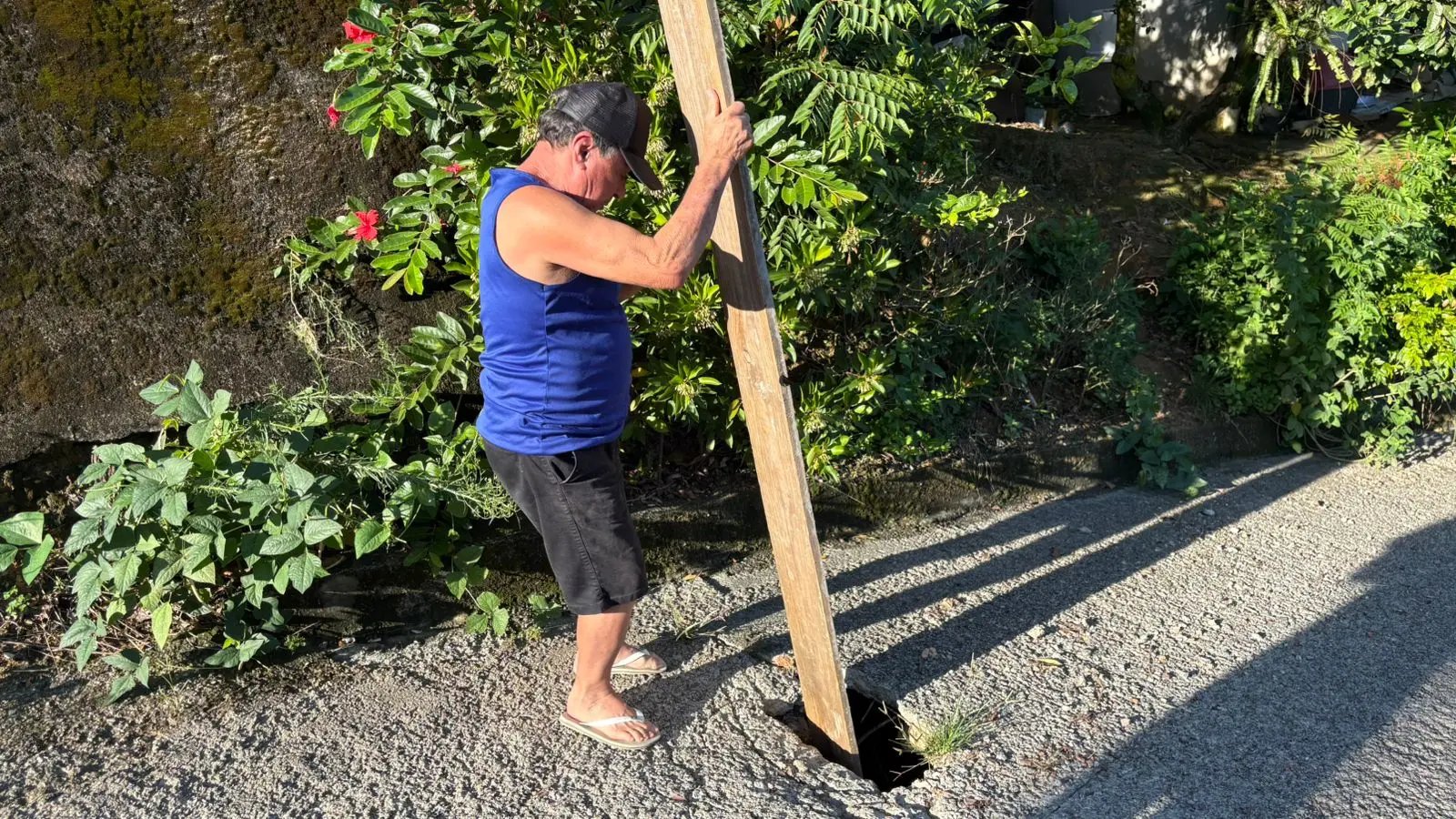 Quem relata o problema é Alfredo Ribeiro, conhecido como Paulista, morador da rua há 25 anos. Ele conta que precisou colocar uma tábua no meio da via para alertar motoristas sobre o risco. “Eu tive que usar a tábua, porque sinaliza, é mais frágil, né?" explicou.