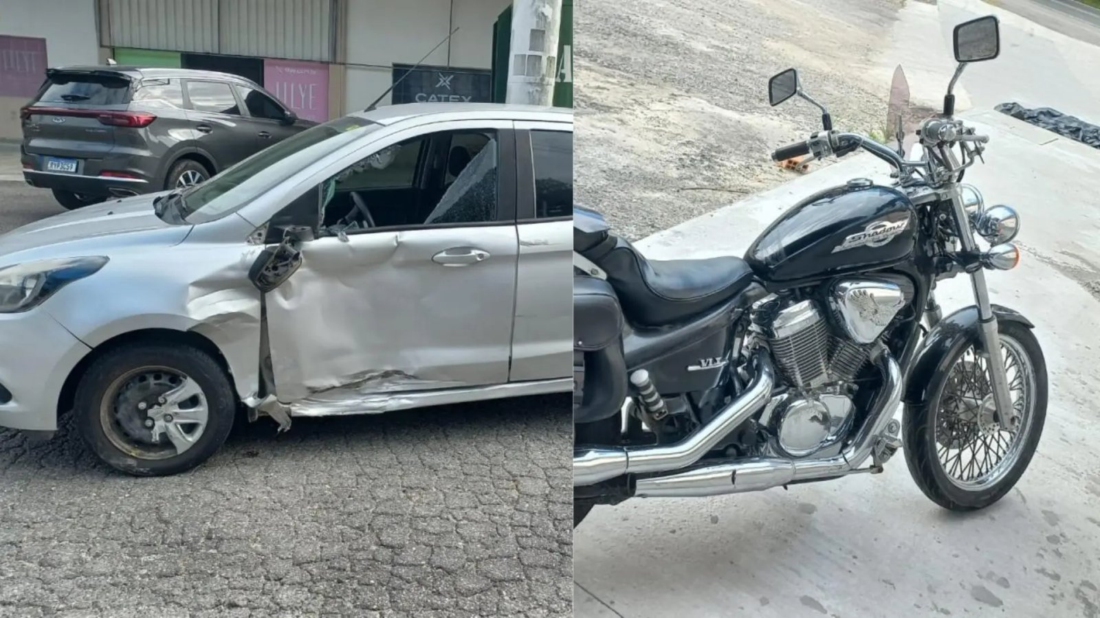 Segundo a Polícia Militar Rodoviária, no local a guarnição verificou que a condutora do Ford Ka, de 46 anos, seguia sentido Gaspar a Brusque pela rodovia quando convergiu à esquerda sem parar no acostamento da direita. A motocicleta Honda Shadow, conduzida por um homem de 44 anos que vinha atrás, atingiu a lateral esquerda do carro.
