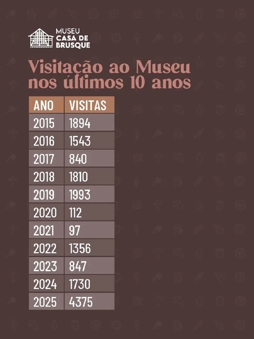 O resultado consolida 2025 como um marco sem precedentes para o Museu Casa de Brusque, refletindo não apenas um número expressivo de visitantes, mas também um crescimento consistente do interesse do público. O desempenho reafirma o museu como uma das principais referências culturais de Brusque e do Vale do Itajaí, ampliando seu alcance junto à comunidade local e aos visitantes de outras cidades.