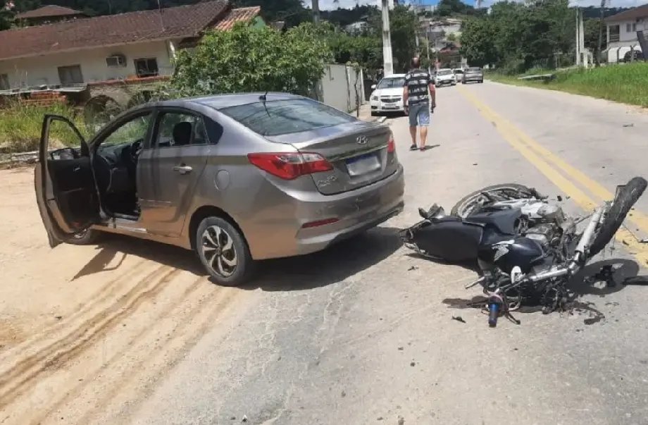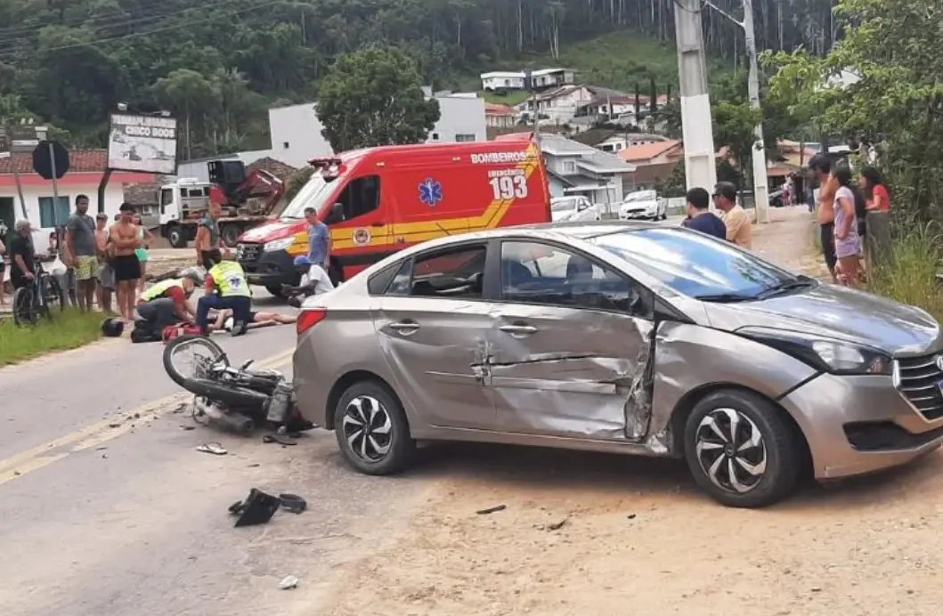 Um acidente envolvendo um carro e uma motocicleta deixou um homem ferido na manhã deste domingo (25), em Brusque. A colisão mobilizou equipes de resgate e resultou em ferimentos graves no condutor da moto.