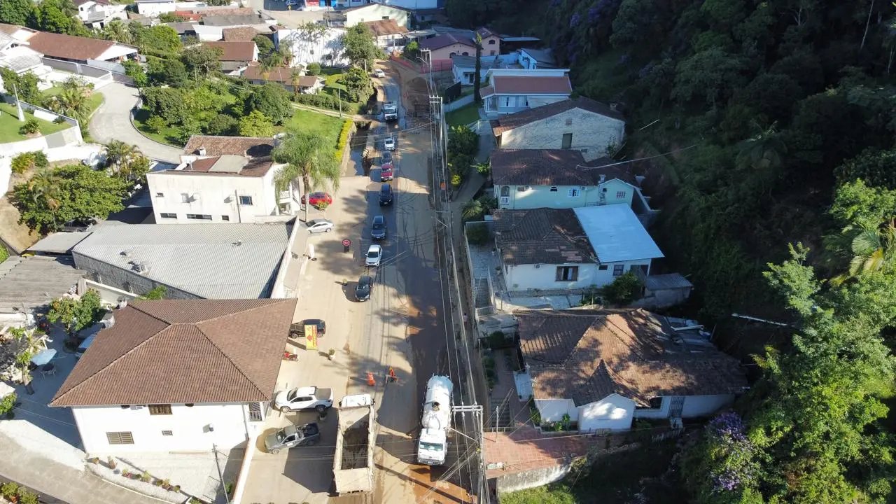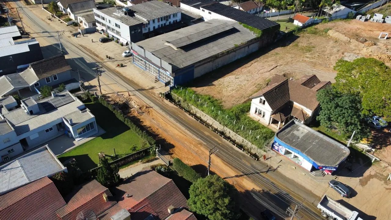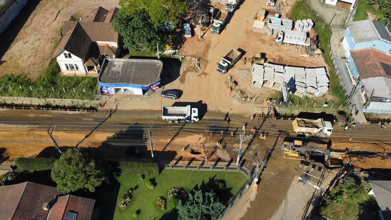 Para quem vem dos bairros Águas Claras, Santa Luzia e região, em direção ao centro, a passagem já está possível. Um ponto que exige cuidado especial é o início da rua Gustavo Halfpap, onde o maquinário ocupa quase toda a pista. No local, um funcionário da empresa responsável auxilia no controle do tráfego, organizando a passagem de veículos em cada sentido.