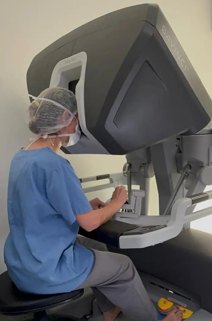 A Dra. Bárbara ressalta que, apesar do uso da tecnologia, o robô não realiza a cirurgia sozinho. “Quem opera é sempre o médico. O cirurgião fica sentado em um console, com controles nas mãos e nos pés, comandando os movimentos dos braços do robô dentro do abdome da paciente”, explica.