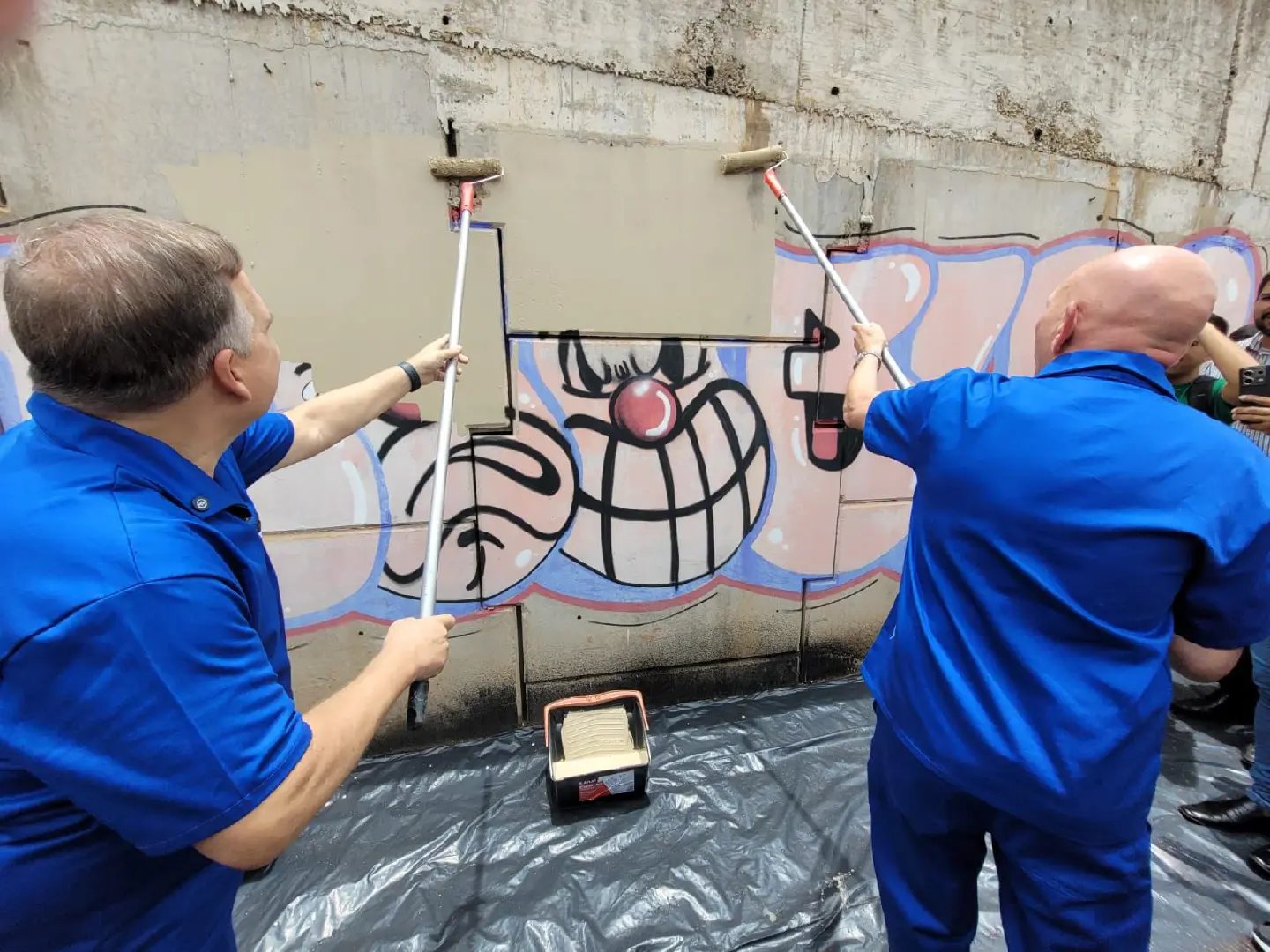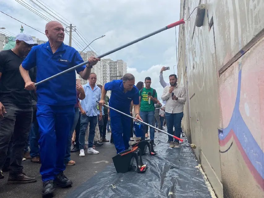 “O Luciano veio aqui hoje dar uma aula de limpeza urbana. Não podemos mais aceitar esse tipo de crime estampado nos muros e viadutos da nossa cidade”, disse.