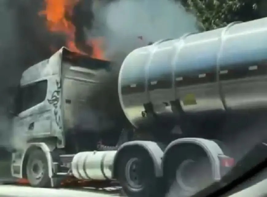 As chamas atingiram a cabine do veículo, que ficou completamente destruída. Por segurança, a pista precisou ser totalmente interditada durante o combate ao fogo e o rescaldo.