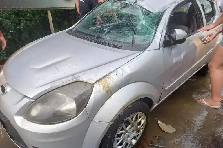 Segundo os bombeiros, a ocorrência foi atendida por volta das 17h50. No local, foi constatado o capotamento de um Ford Ka, que ainda permanecia sobre a via.