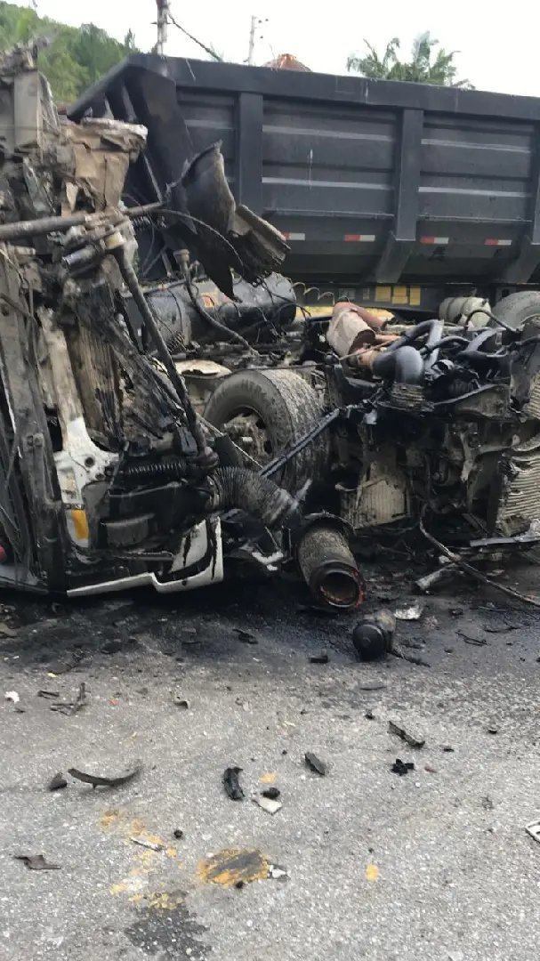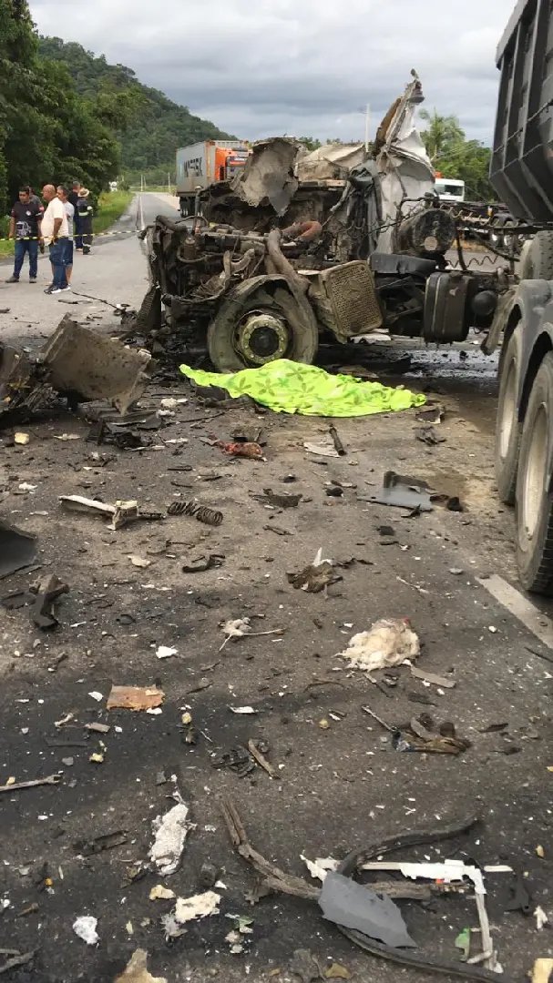 Segundo o Corpo de Bombeiros, as equipes foram acionadas por volta das 15h10. No local, foi confirmada a colisão entre os dois caminhões. Um dos motoristas, identificado pelas iniciais I.M.A., condutor do caminhão caçamba, morreu no local após perder o controle do veículo com o impacto.