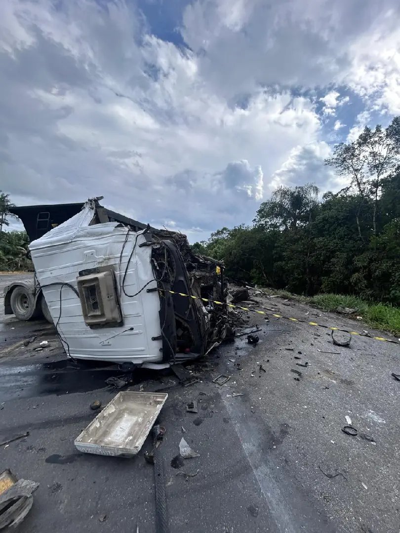 Um grave acidente entre dois veículos pesados terminou com uma pessoa morta e interditou a rodovia por várias horas. O acidente envolveu uma carreta de nove eixos e um caminhão caçamba e foi registrado na tarde desta segunda-feira (2), na SC-416, km 3, em Garuva.