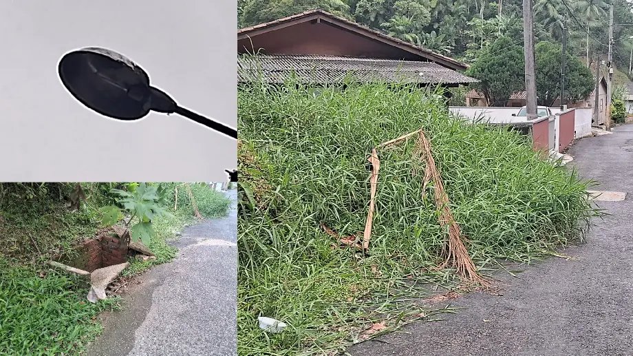 Além disso, um poste de iluminação pública está sem lâmpada há quase um mês, deixando o trecho no escuro durante a noite. Os moradores relatam dificuldades para conseguir atendimento e pedem que a prefeitura faça a manutenção no local.