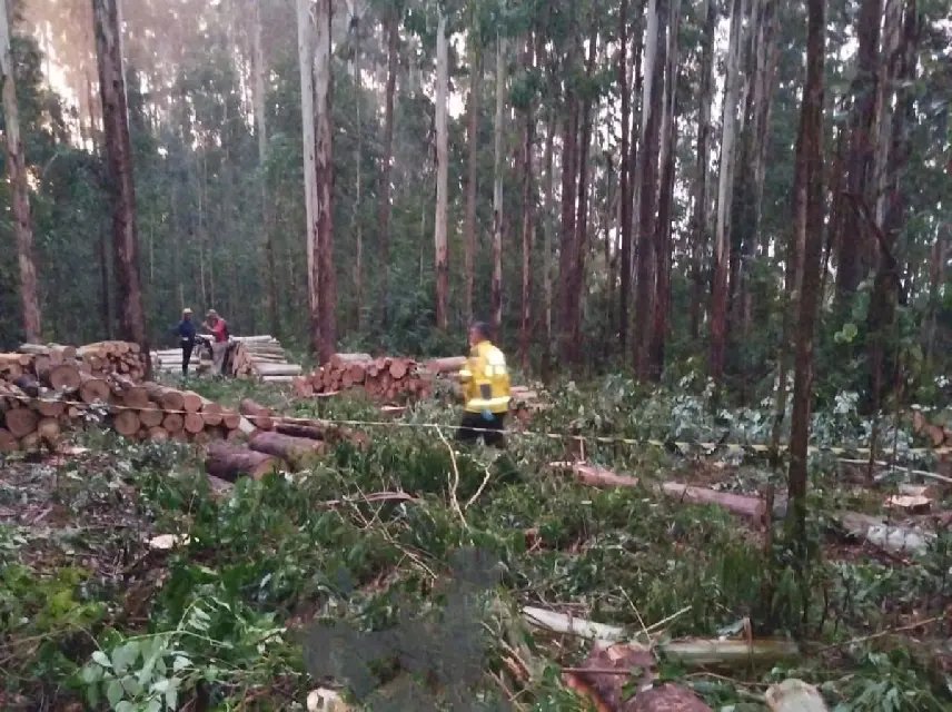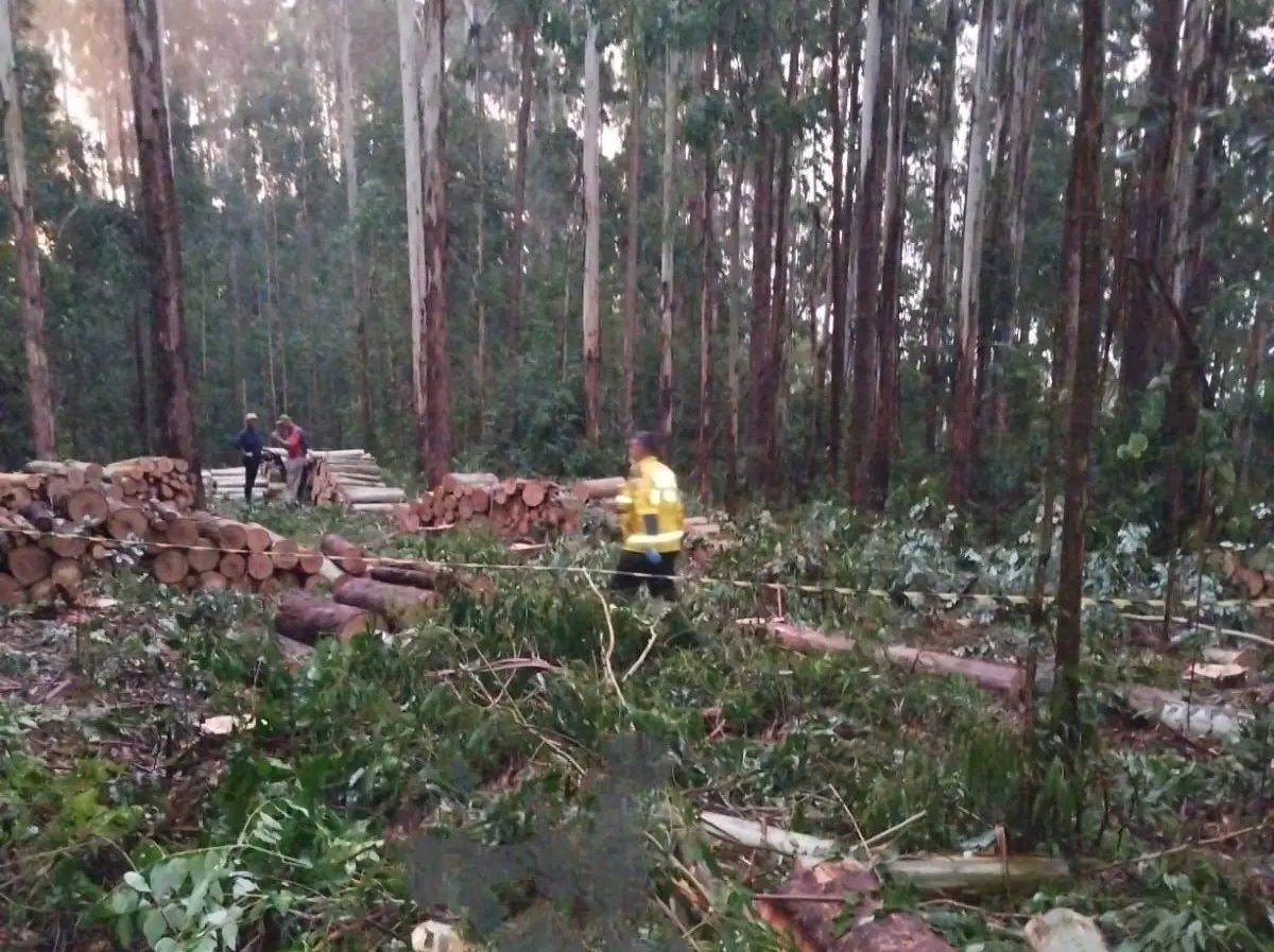 Segundo o Corpo de Bombeiros, o homem, de 43 anos, foi encontrado caído no chão, já sem sinais vitais, com afundamento de crânio, compatível com o impacto da árvore sobre o corpo.