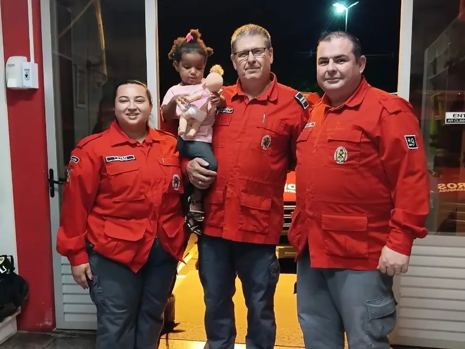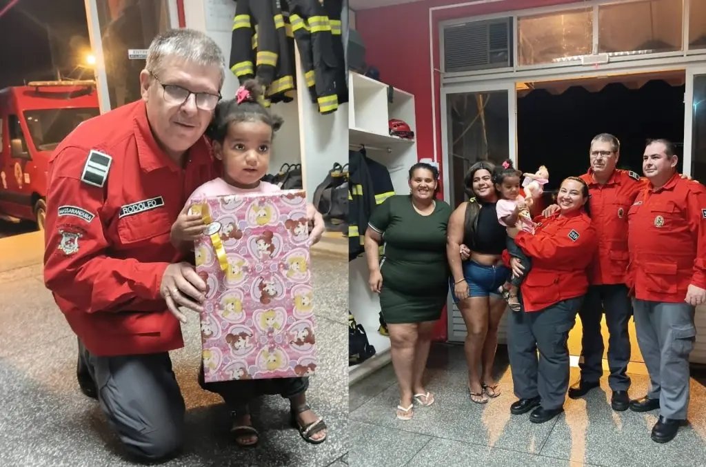Durante a visita, a criança recebeu duas bonecas como forma de carinho e celebração pela recuperação. Uma foi entregue pela bombeira Lilian, que participou diretamente do atendimento de emergência, e a outra por uma agente comunitária, gesto que reforçou a rede de apoio construída em torno da família após o ocorrido. O momento comoveu os bombeiros que atuaram no resgate.