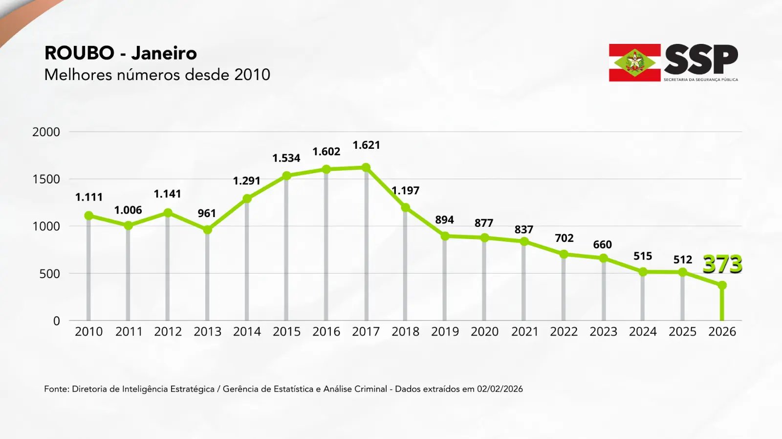 O secretário de Estado da Segurança Pública, coronel Flávio Graff, ressalta que os resultados são ainda mais impactantes se considerar que o mês de janeiro concentra um dos maiores volumes de visitantes do ano. Segundo Graff, o desempenho excepcional no combate à criminalidade em Santa Catarina envolve investimentos, planejamento, inteligência e o trabalho integrado das forças de segurança.