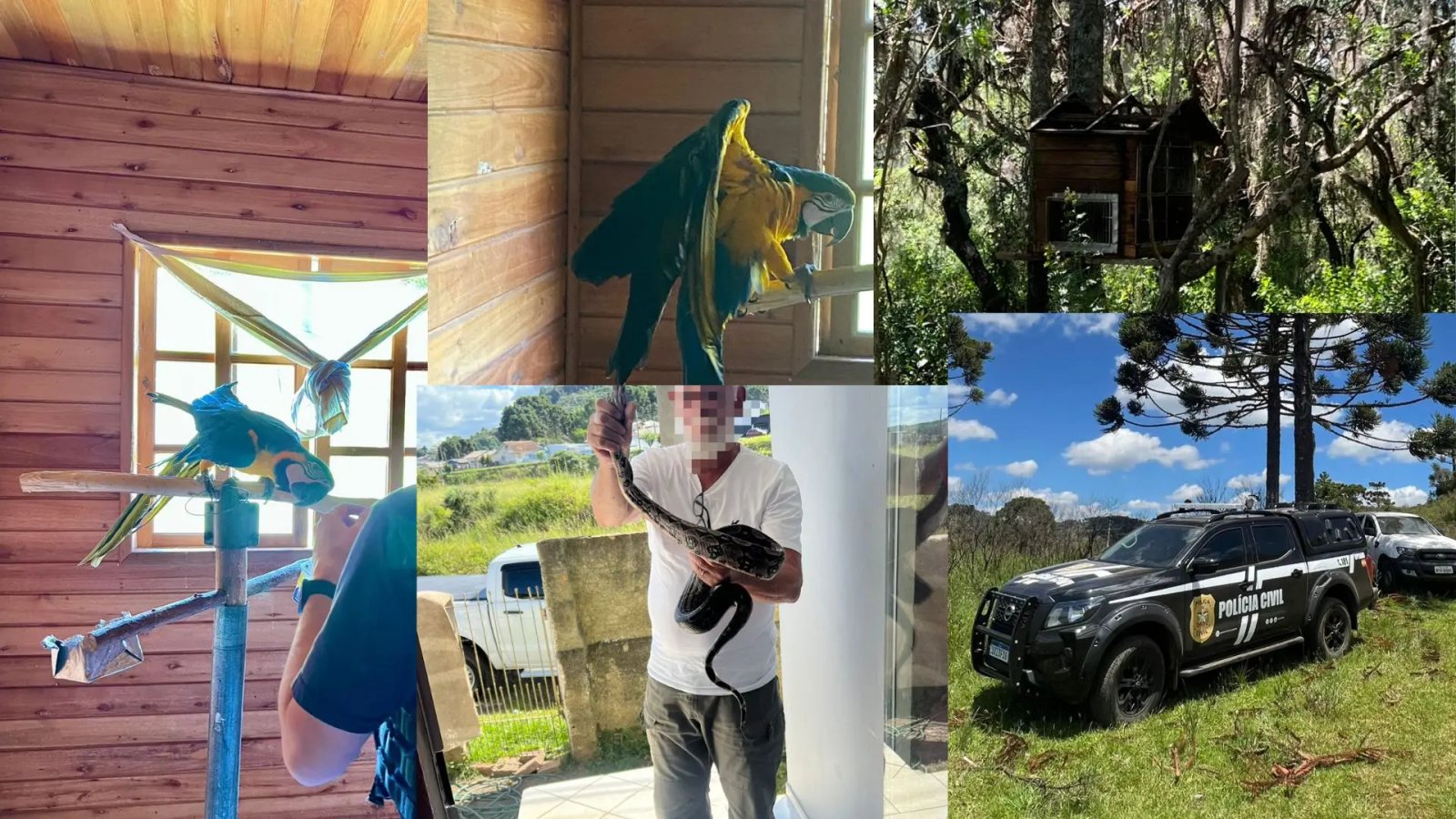 Vinte animais silvestres mantidos ilegalmente em cativeiro foram resgatados em diferentes cidades de Santa Catarina, revelando um esquema de comércio irregular que incluía espécies como arara, papagaio, jiboia, jabutis e tartarugas.