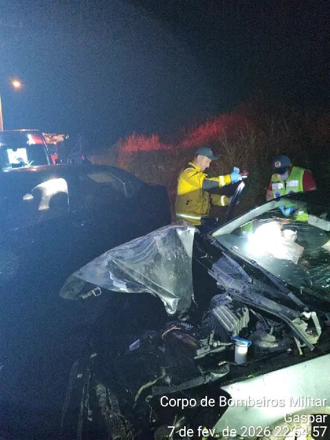 Um acidente de trânsito envolvendo dois veículos foi registrado na noite deste sábado (7), por volta das 22h34, na BR-470, no bairro Belchior Baixo, em Gaspar. A colisão ocorreu nas proximidades da empresa Brasil Produtos Químicos S.A. e mobilizou equipes de resgate e a Polícia Rodoviária Federal (PRF).