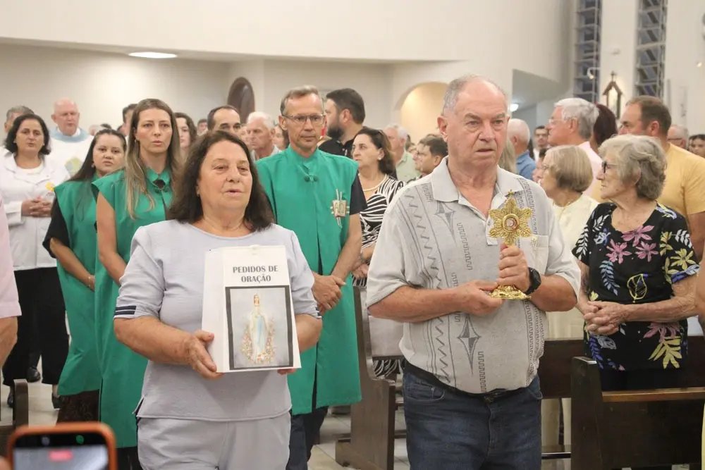 “Ao celebrarmos Nossa Senhora de Lourdes, recordamos a aparição em Lourdes e, de forma especial, a figura de Santa Bernadete, a jovem escolhida para protagonizar essa história tão marcante da manifestação de Maria. Chamam a atenção a sua obediência, o seu amor e, principalmente, a sua simplicidade. Sempre que celebramos os nossos padroeiros, gosto de destacar a importância de seguirmos seu exemplo. Quando temos Santa Bernadete como referência, vemos alguém que de fato nos mostra o caminho de Nossa Senhora, o caminho de buscarmos cada vez mais, de forma profunda, a nossa fé. Que essa simplicidade também esteja em nossos corações e que nós, em nossas comunidades, possamos vivê-la no dia a dia”, falou padre Hélio.