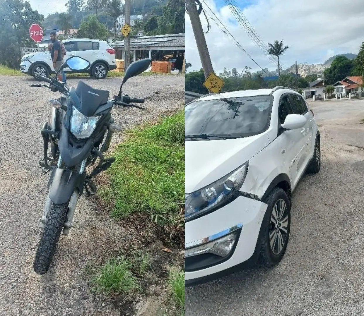 Conforme a PMRv, a caminhonete Kia Sportage estava parada às margens da rodovia aguardando oportunidade para realizar a conversão à esquerda e seguir no sentido Brusque, quando, durante a manobra, acabou sendo atingida pela motocicleta que vinha no sentido contrário.