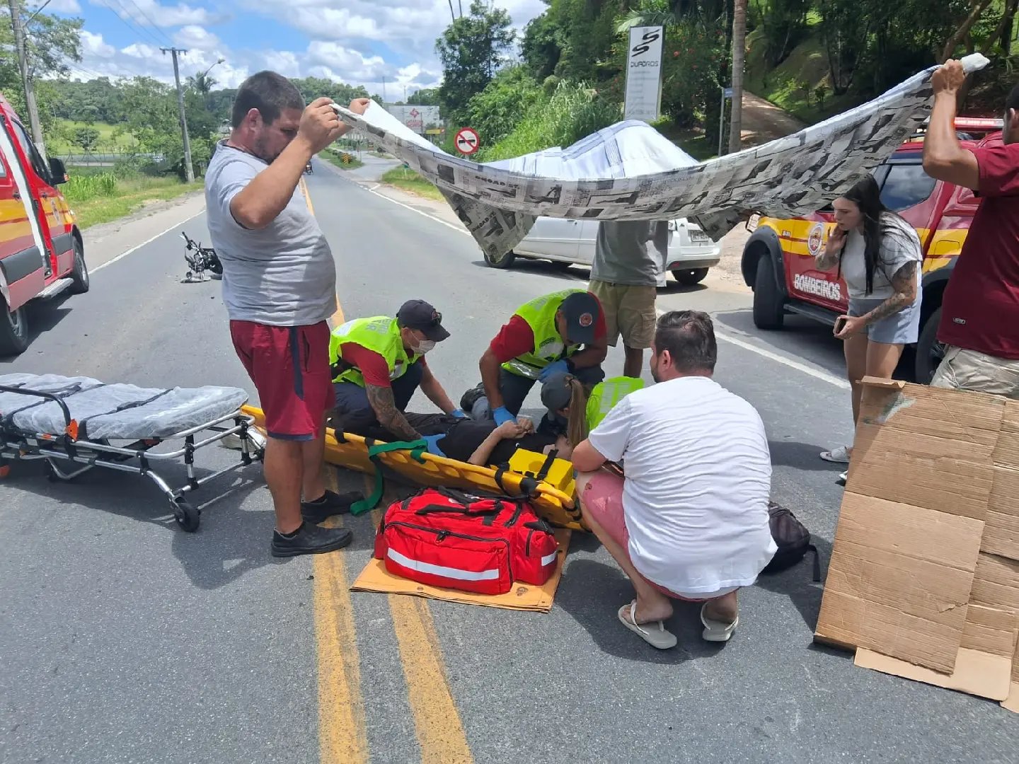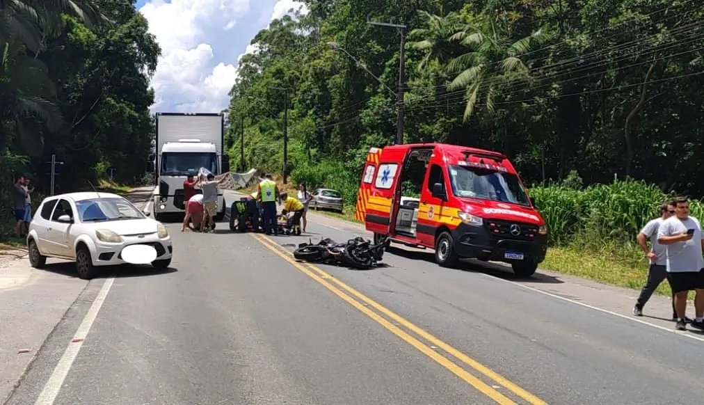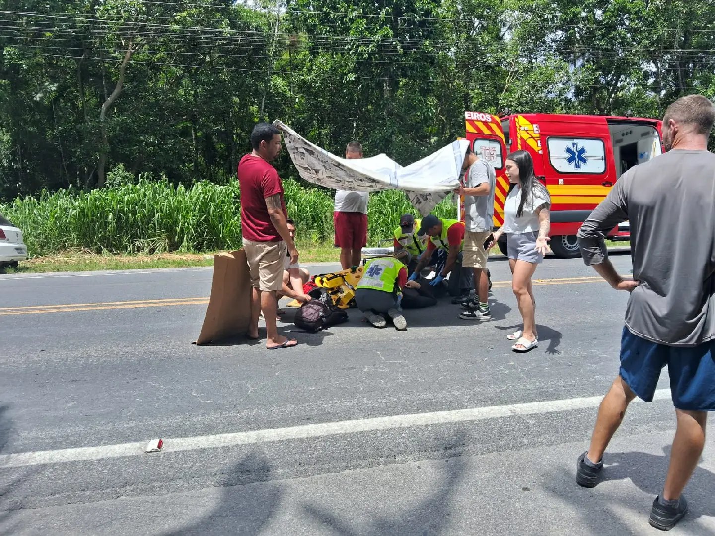 Já o motociclista, um homem de 24 anos, foi encontrado caído sobre a pista, consciente, porém desorientado. Ele apresentava suspeita de traumatismo cranioencefálico leve, ferimento lacerante no rosto e suspeita de fratura na região da pelve e em um dos punhos. A vítima foi atendida no local e encaminhada ao Hospital de Gaspar pela equipe dos bombeiros.
