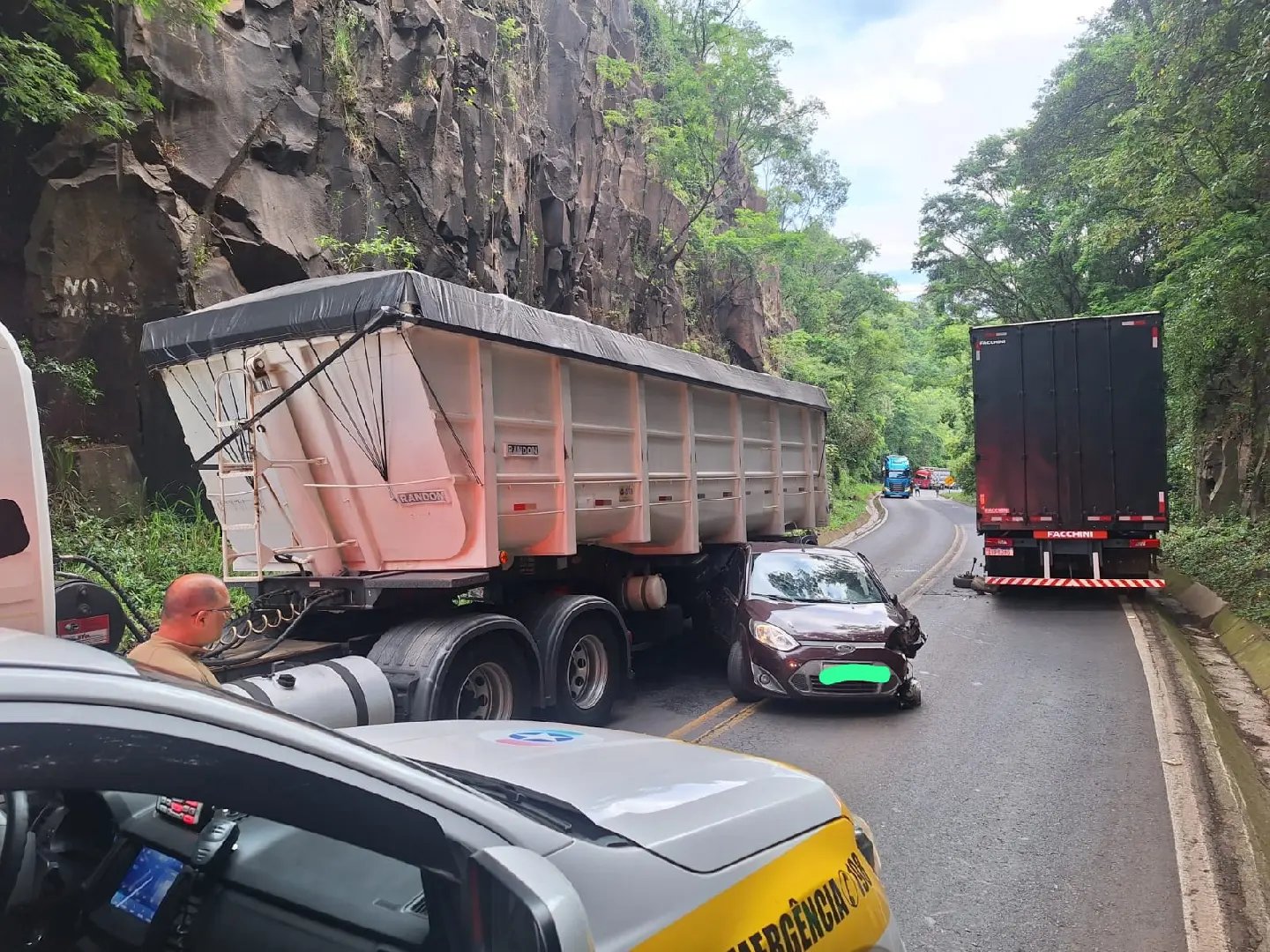 Na sequência, o carro ainda atingiu o primeiro caminhão, que trafegava no mesmo sentido. Conforme a PMRv, o condutor do caminhão relatou que a manobra do automóvel causou o acidente.