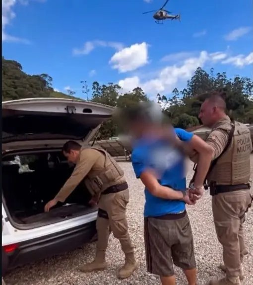 Após levantamento de informações, a polícia montou um cerco com apoio de outras guarnições e localizou o homem em um estabelecimento na Estrada Geral Arataca, no bairro Arataca. Ele foi abordado e não ofereceu resistência.