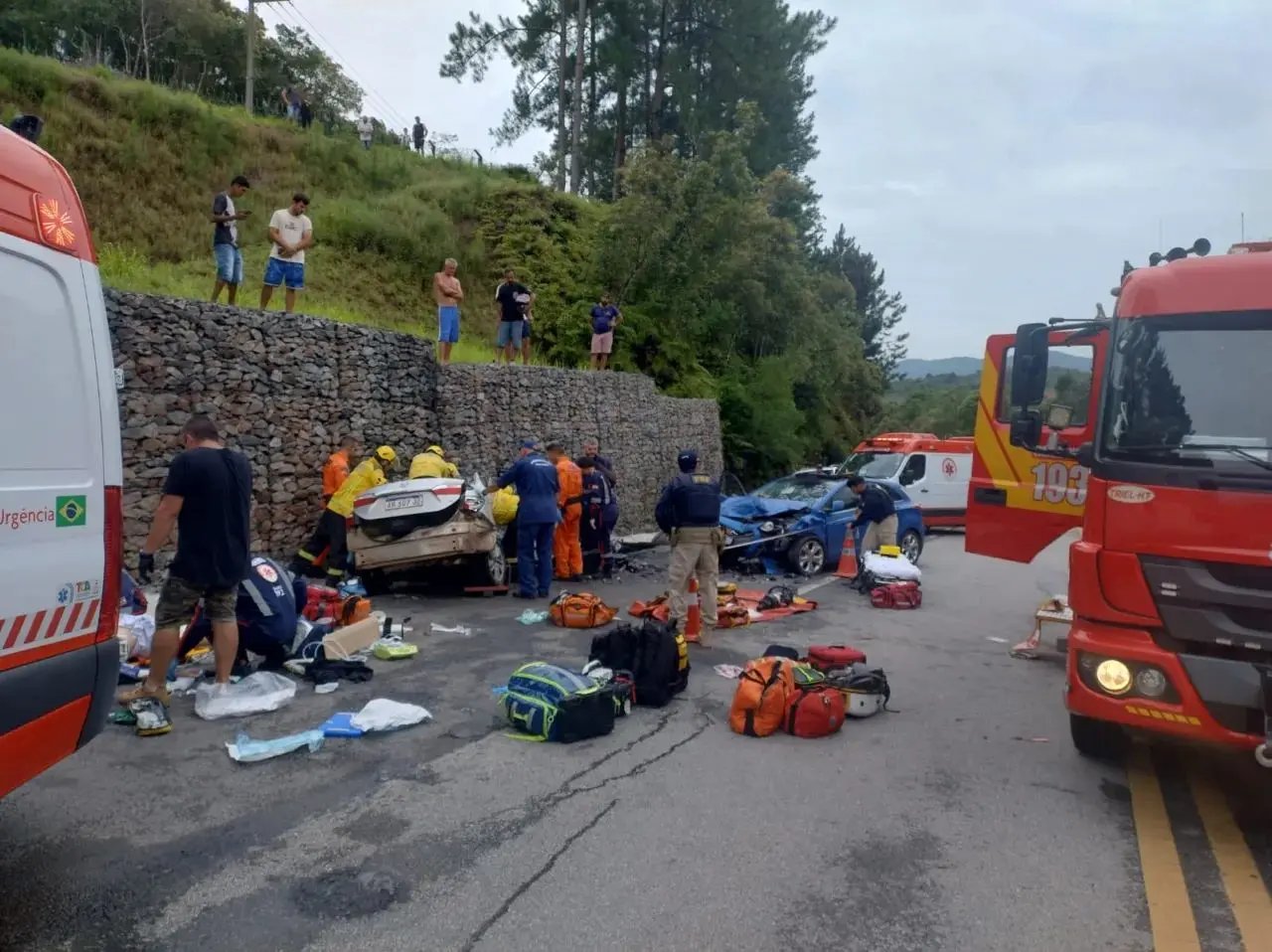 O Corpo de Bombeiros atuou no desencarceramento das vítimas com uso de equipamentos hidráulicos. O atendimento contou com ambulâncias do Samu, incluindo uma Unidade de Suporte Avançado, além do helicóptero Arcanjo. A Polícia Rodoviária Federal acompanhou a ocorrência.