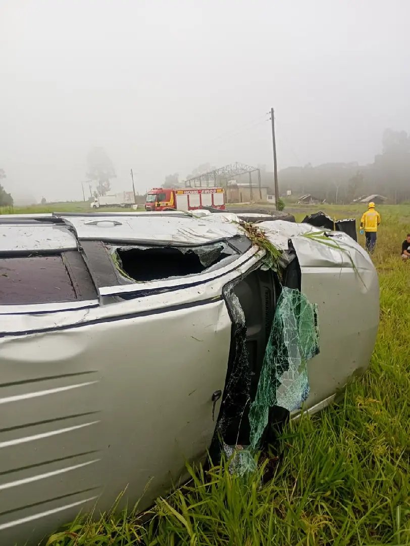 Segundo o Corpo de Bombeiros, após a batida na traseira, o carro saiu da pista e capotou. No veículo estavam duas mulheres, de 66 e 53 anos, que conseguiram sair por conta própria antes da chegada das equipes.