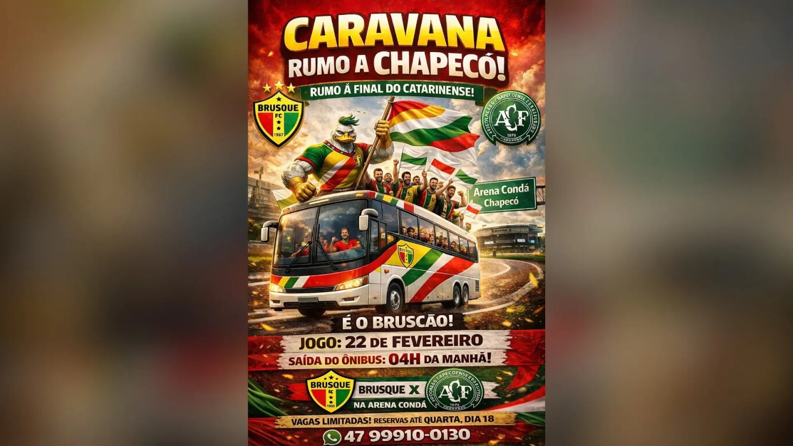 Torcedores do Brusque estão organizando uma caravana de ônibus para acompanhar o time no jogo de volta da semifinal do Catarinense contra a Chapecoense. A viagem está sendo preparada para a partida decisiva após a vitória no jogo de ida, em Brusque.