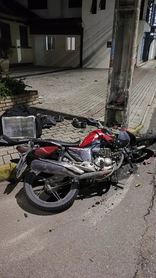Uma colisão entre um carro e uma moto terminou com um motociclista gravemente ferido após ele ser arremessado contra um poste. O acidente foi registrado por volta das 21h18 desta segunda-feira (16), no cruzamento da avenida Otto Renaux com a rua Benjamin Constant, no bairro São Luiz, em Brusque.