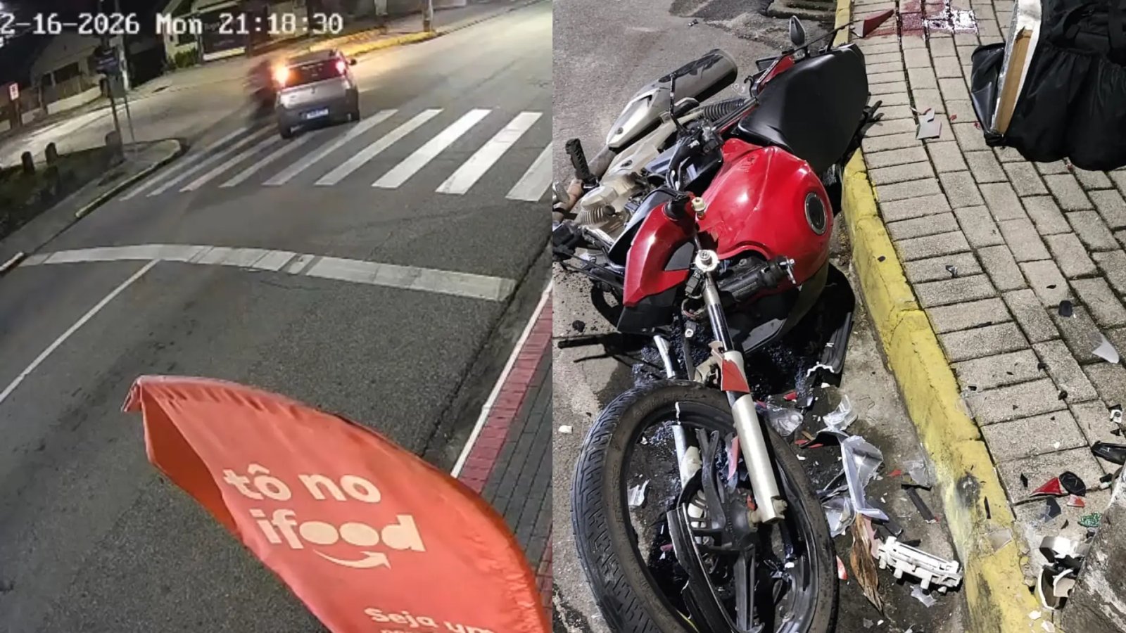 Imagens de uma câmera de segurança, recebidas pela reportagem da Rádio Cidade, mostram o momento da colisão entre um Fiat Uno e uma Honda CG. Nas imagens, o carro aparece parado na faixa da direita e, ao abrir o semáforo, cruza para acessar a rua Benjamin Constant. Neste instante, a motocicleta que vinha pela faixa da esquerda não consegue frear, atinge o carro e, na sequência, colide fortemente contra um poste.