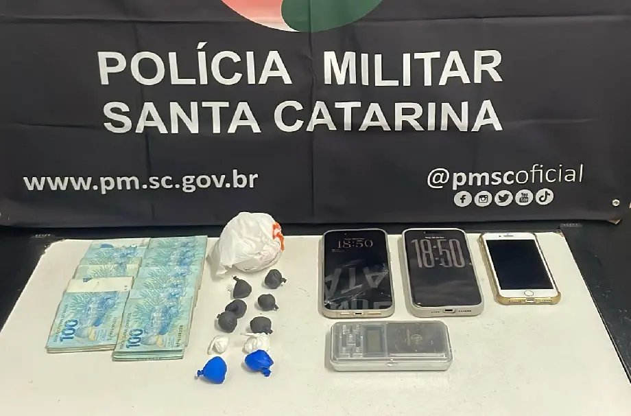 Segundo a PM, o suspeito, de 32 anos, foi abordado dentro de um veículo. No interior do carro, os policiais encontraram uma porção de cocaína e dois celulares. Durante a abordagem, o homem confessou que vendia drogas.