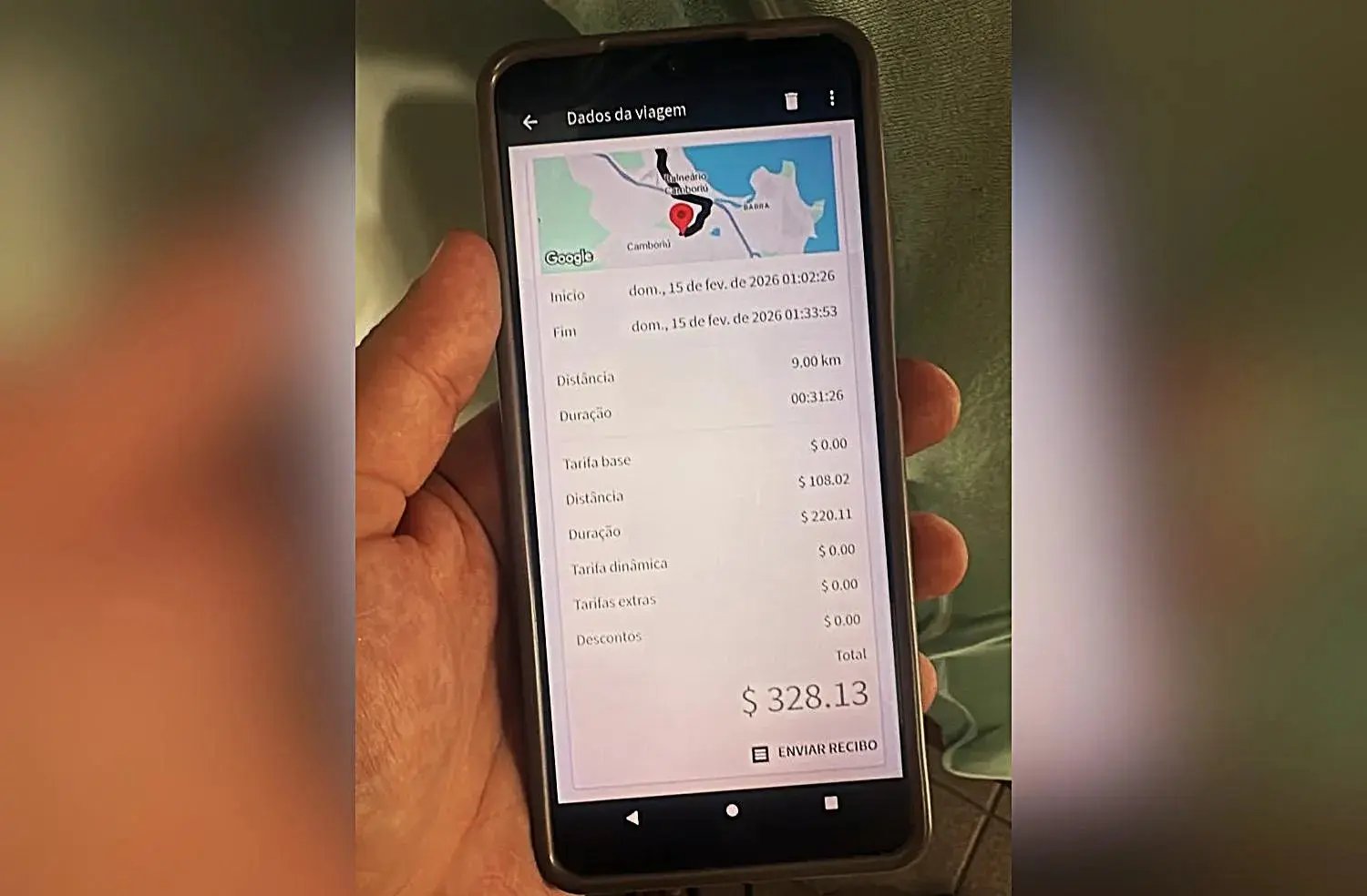 Após o episódio, os passageiros entraram em contato com o motorista por mensagens. Na conversa, ele teria enviado imagens de outras corridas realizadas na mesma noite, incluindo um trajeto de 8 quilômetros pelo qual teria cobrado R$ 418,00.