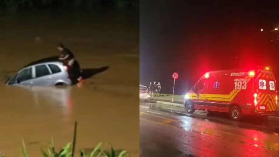 Motorista escapou pelo porta-malas antes do carro afundar, dizem bombeiros
