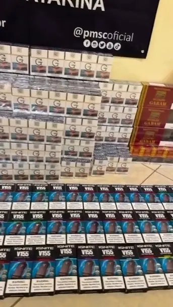Durante a vistoria realizada na conveniência, situada às margens da SC-410, no bairro Cardoso, foram encontrados 49 dispositivos eletrônicos para fumar expostos logo na entrada do local, bem como 15 embalagens vazias já comercializadas. Também estavam disponíveis para venda 101 maços de cigarros da marca Gudang e 516 unidades da marca Ggift. No interior do estabelecimento ainda foi localizada uma porção de aproximadamente 9,3 gramas de substância semelhante à maconha.