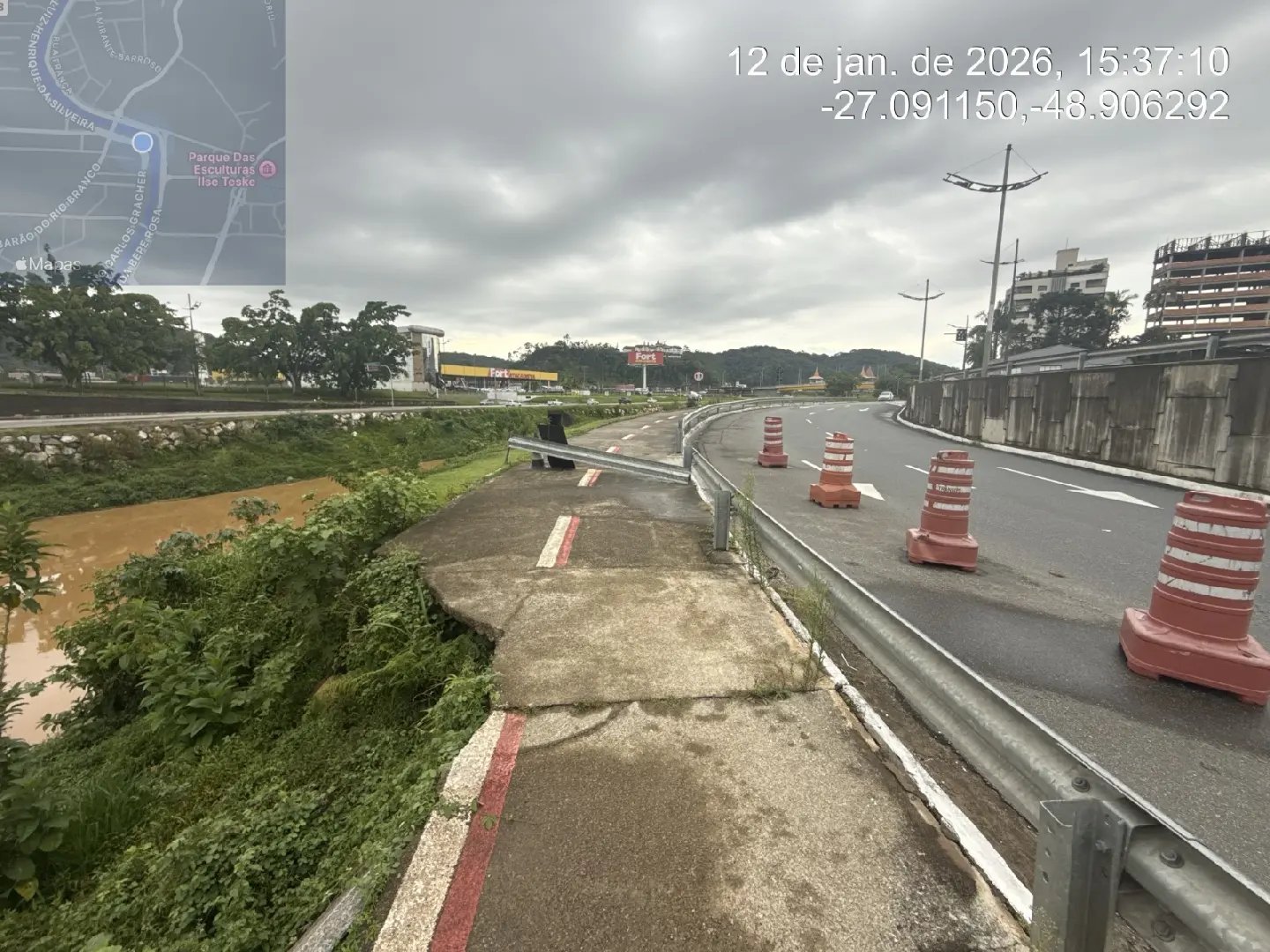 Para a execução dos trabalhos, meia pista ficará temporariamente interditada para o deslocamento das máquinas. A intervenção também ocorre no trecho próximo à ponte da Bilu.