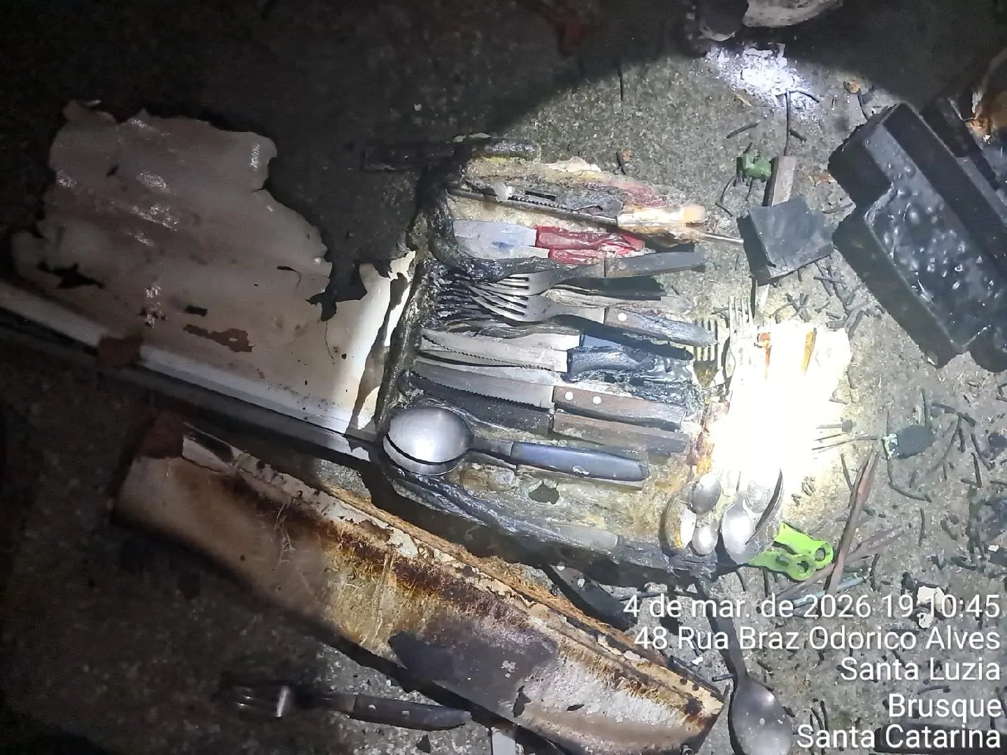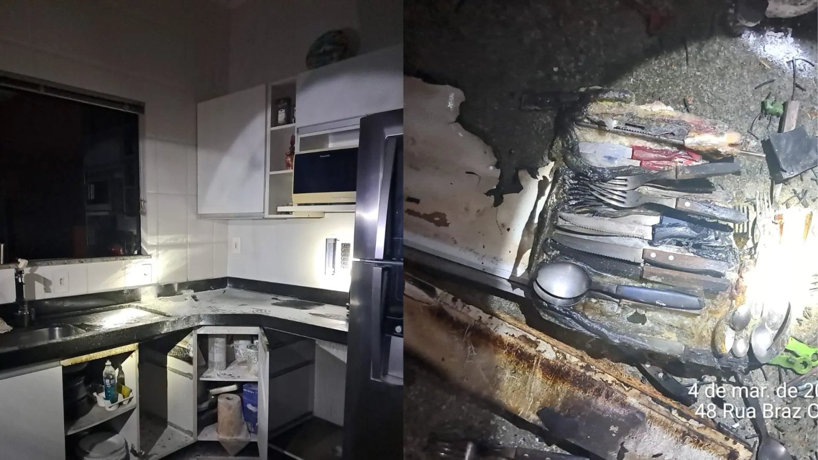 A casa, de alvenaria e com dois pavimentos, tem cerca de 130 metros quadrados. Segundo relato da proprietária, um isqueiro estava guardado em uma das gavetas da pia. Ao perceber fumaça saindo do móvel e abrir a gaveta, o fogo começou a se formar no local.