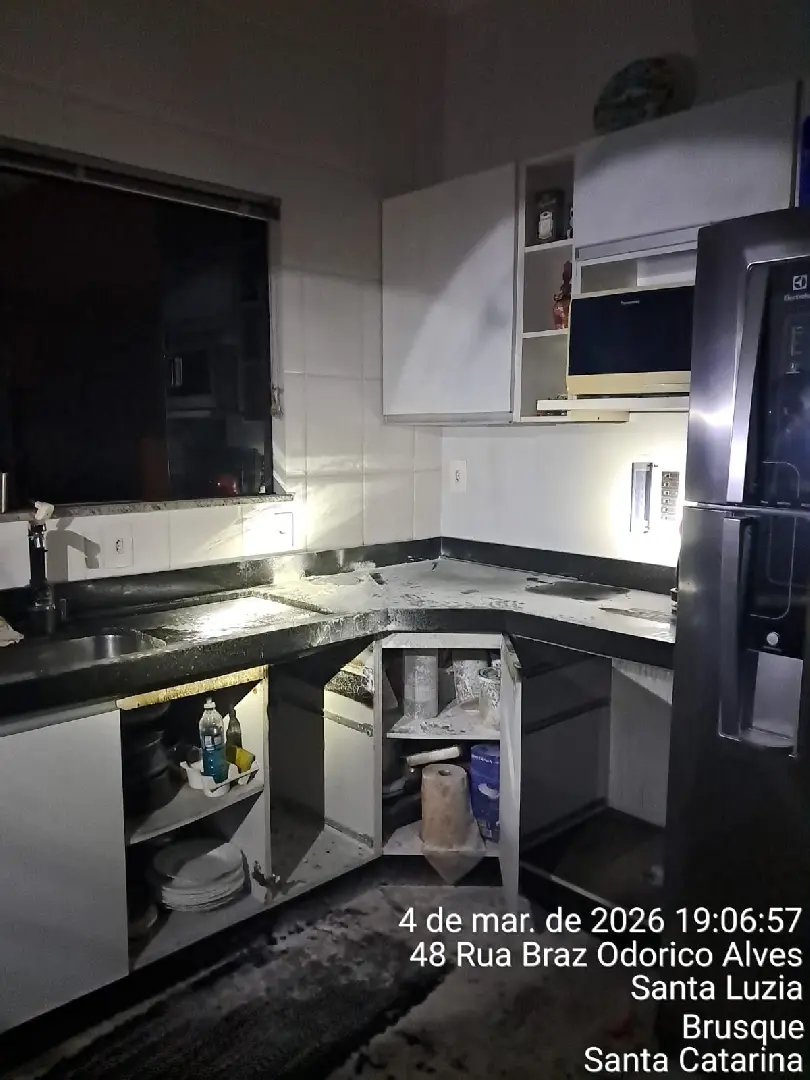 Um princípio de incêndio atingiu uma residência na noite desta quarta-feira (4), em Brusque. O caso ocorreu na rua SL-017, no bairro Santa Luzia, por volta das 18h49, e teve início na cozinha do imóvel.