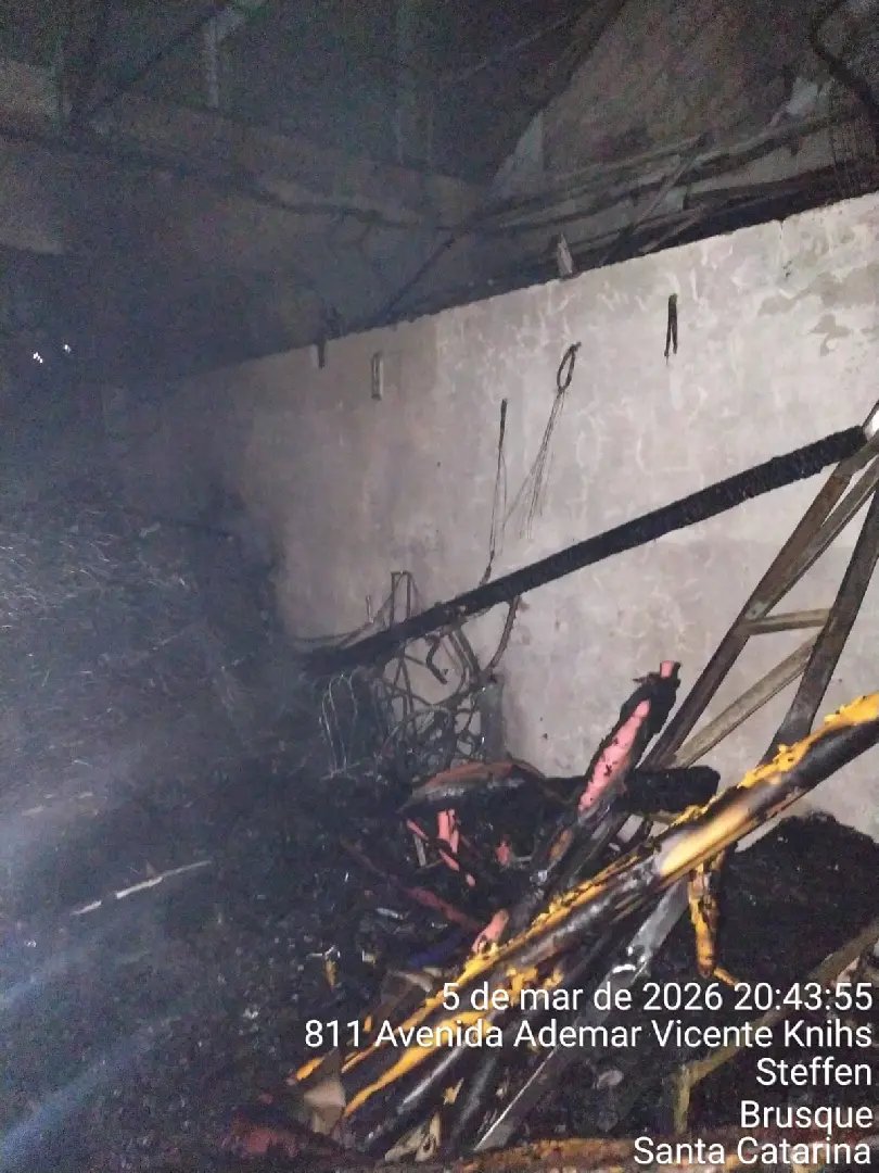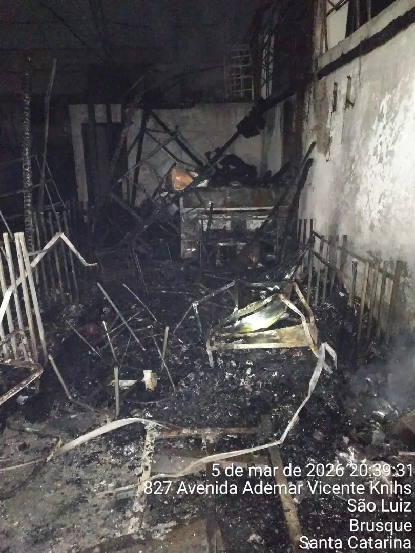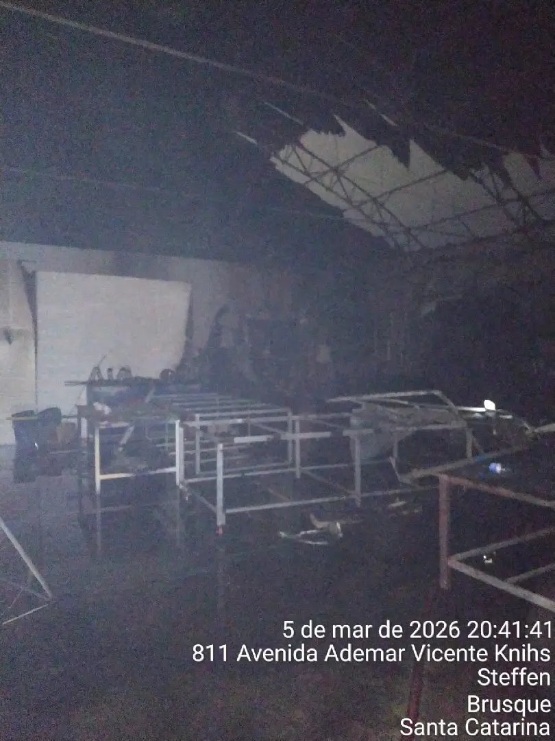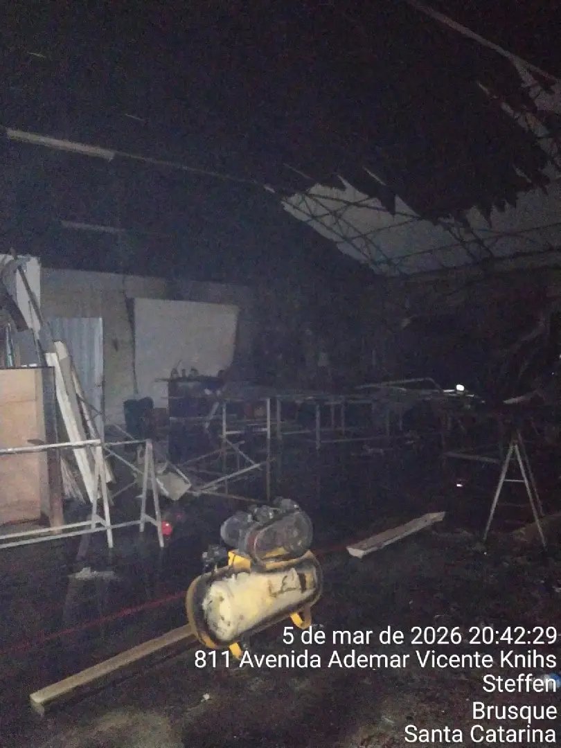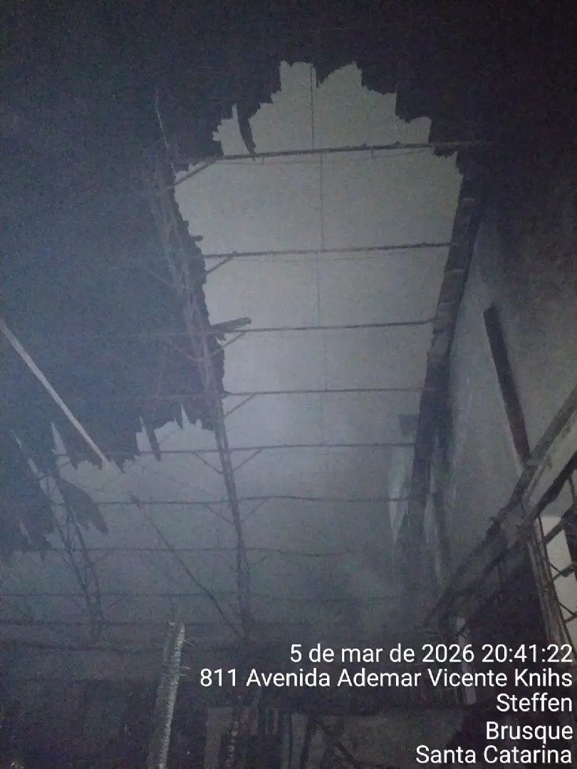 Os bombeiros trouxeram mais informações acerca do incêndio registrado na noite desta quinta-feira (5), em um galpão localizado na Avenida Ademar Vicente Knihs, no bairro Steffen, em Brusque. A ocorrência foi atendida por volta das 18h25 e mobilizou diversas equipes do Corpo de Bombeiros Militar. Conforme os dados repassados pela corporação, cerca de 70% da estrutura do imóvel acabou colapsando em razão do fogo, que atingiu um galpão comercial de aproximadamente 750 metros quadrados.