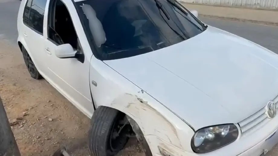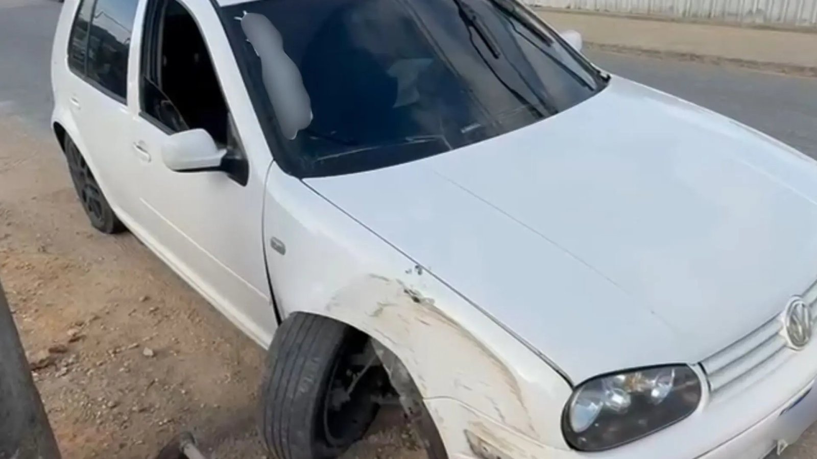 O veículo envolvido é um Volkswagen Golf branco. Com o impacto, o airbag foi acionado e parte do rodado do carro chegou a se desprender.
