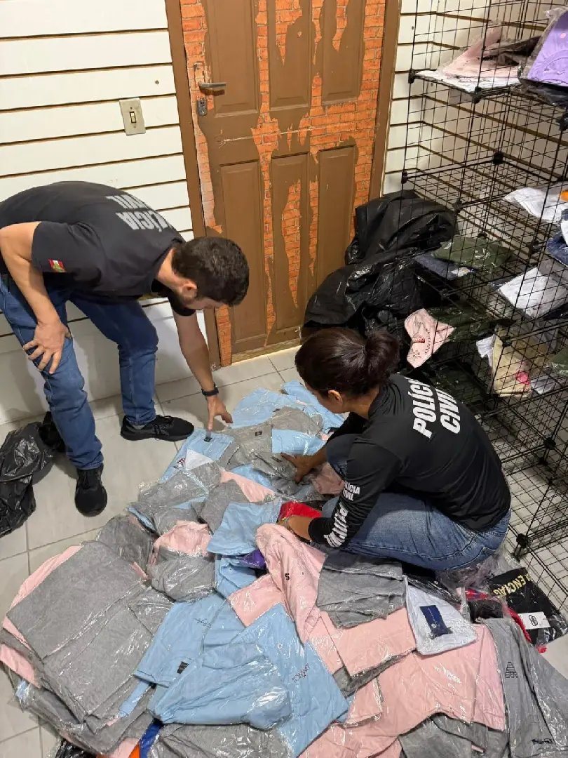 Nos locais inspecionados, foram encontradas roupas ostentando marcas internacionais. Além das peças, foram apreendidos equipamentos eletrônicos e documentos que permitirão o aprofundamento das investigações.