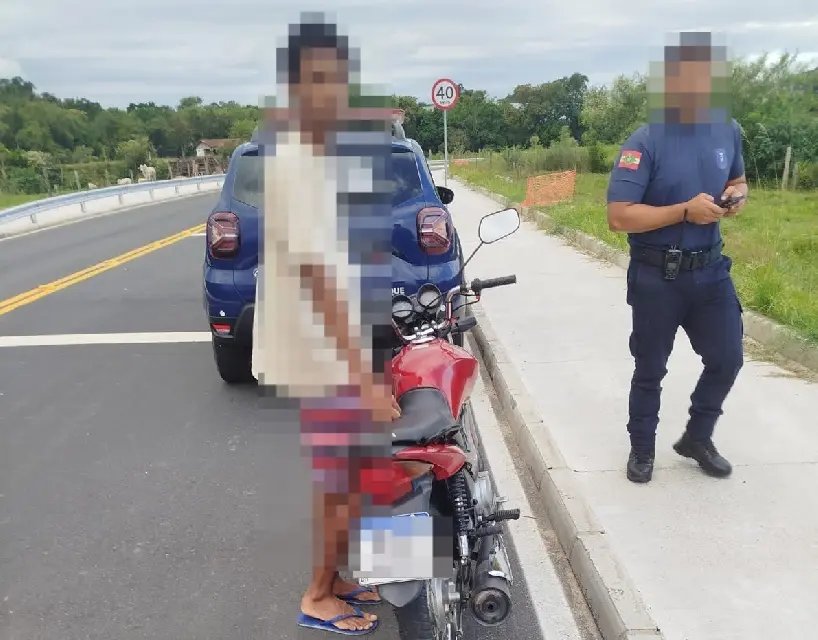 Ao perceber as irregularidades na condução da motocicleta, a guarnição realizou a abordagem para verificar a situação do condutor e do veículo. Durante os procedimentos, os agentes confirmaram que o motociclista não possuía Carteira Nacional de Habilitação (CNH). Diante das irregularidades constatadas, foram lavradas as autuações previstas no Código de Trânsito Brasileiro (CTB).