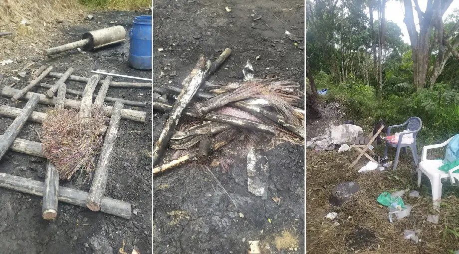 De acordo com a ocorrência, uma guarnição realizava patrulhamento quando encontrou três indivíduos e três veículos parados, obstruindo a passagem da via, no final de uma trilha.