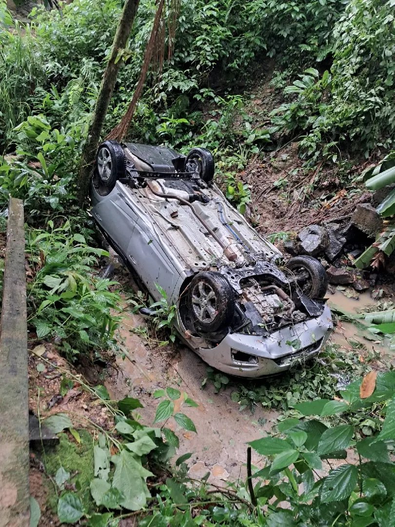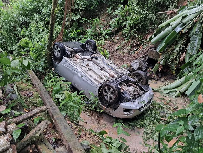 De acordo com o Corpo de Bombeiros, o veículo, um GM Prisma de cor prata, acabou saindo da pista enquanto trafegava pela rodovia e caiu em um terreno localizado abaixo da via. Após a queda, o automóvel ficou com as rodas para cima.
