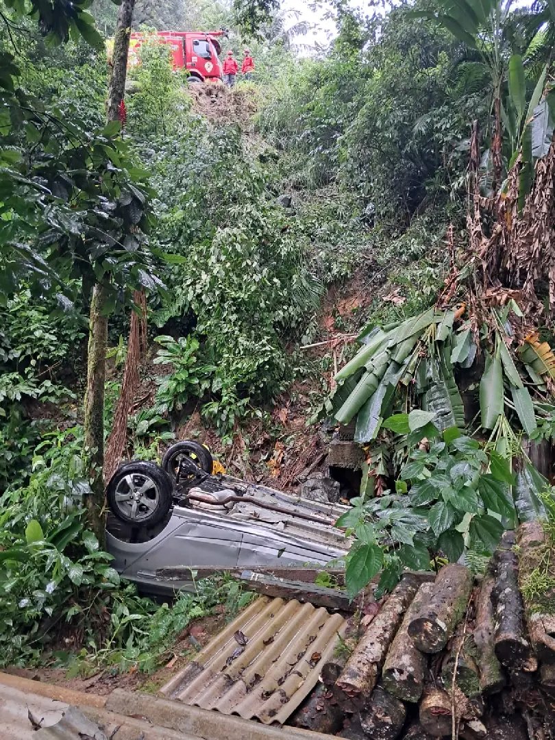 Um carro com um casal de idosos saiu da pista e caiu em uma ribanceira de cerca de 15 metros na manhã desta quinta-feira (12), por volta das 9h48, na rodovia SC-108, no bairro Vila Itoupava, em Blumenau.