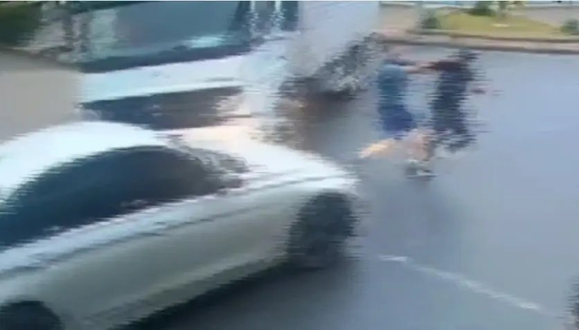 Imagens de uma câmera de vigilância recebidas pela reportagem da Rádio Cidade, na manhã desta quinta-feira (12), mostram o momento em que um caminhão tenta realizar uma conversão na via. No mesmo momento, um carro tenta passar pelo local, mas acaba encontrando dificuldade por conta do espaço reduzido na rua.