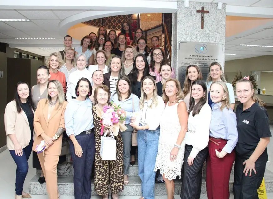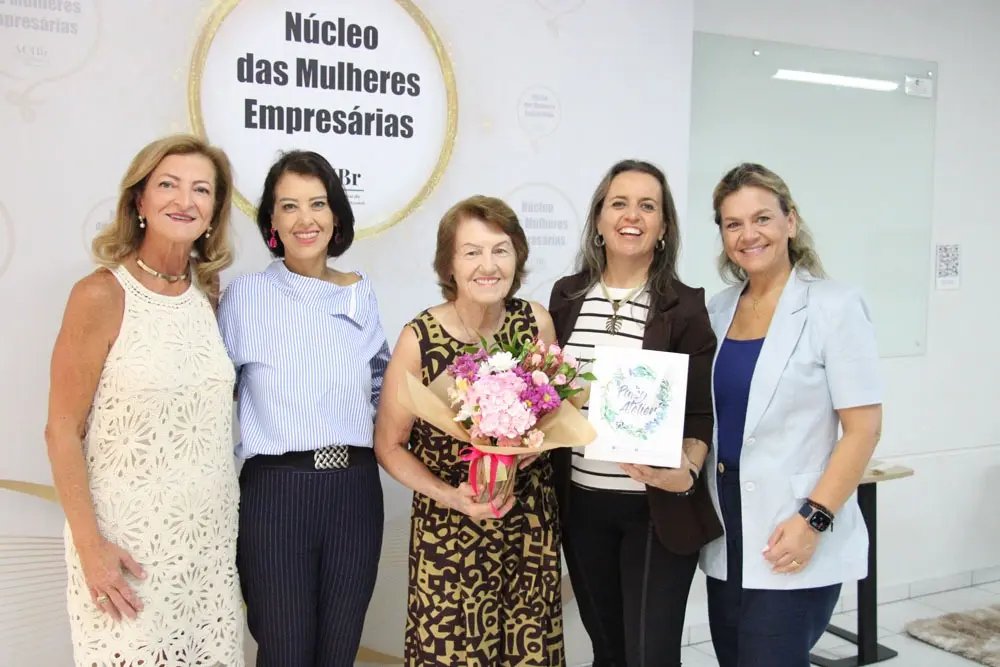 O Núcleo das Mulheres Empresárias da Associação Empresarial de Brusque, Guabiruba e Botuverá (ACIBr) realizou na manhã de quinta-feira (12), um café especial em comemoração ao Dia Internacional da Mulher. O evento contou com a presença da convidada Catarina Moresco, que foi homenageada pelo grupo e teve a oportunidade de compartilhar um pouco dos 40 anos que dedicou ao trabalho voluntário com o grupo de idosos da matriz São Luís Gonzaga.