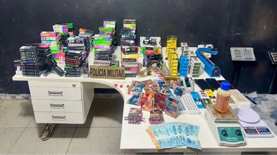 Segundo a polícia, moradores relataram que cigarros eletrônicos, conhecidos como vapers, e essências com THC estariam sendo comercializados por meio de uma plataforma online. Diante das informações, os policiais passaram a monitorar o local indicado.