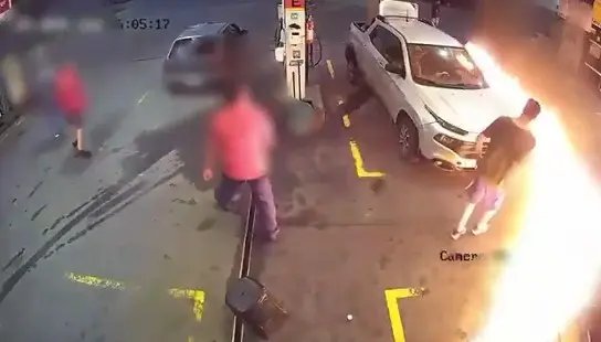 Testemunhas que estavam no posto tentaram impedir que o fogo se espalhasse. Durante a tentativa de contenção, o homem reagiu com chutes e socos, provocando uma luta corporal. Uma pessoa acabou ficando ferida.